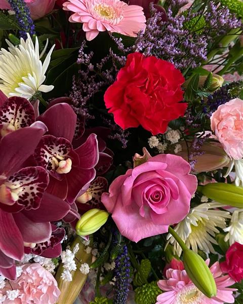 Please note that due to the seasonal availability of flowers it may be necessary to vary individual stems from those shown. Our skilled florists may substitute flowers for one similar in style, quality and value. Where our designs include a sundry item like a vase or basket it may not always be possible to include the exact item as displayed. If such an occasion arises we will make every effort to replace the item with a suitable alternative.